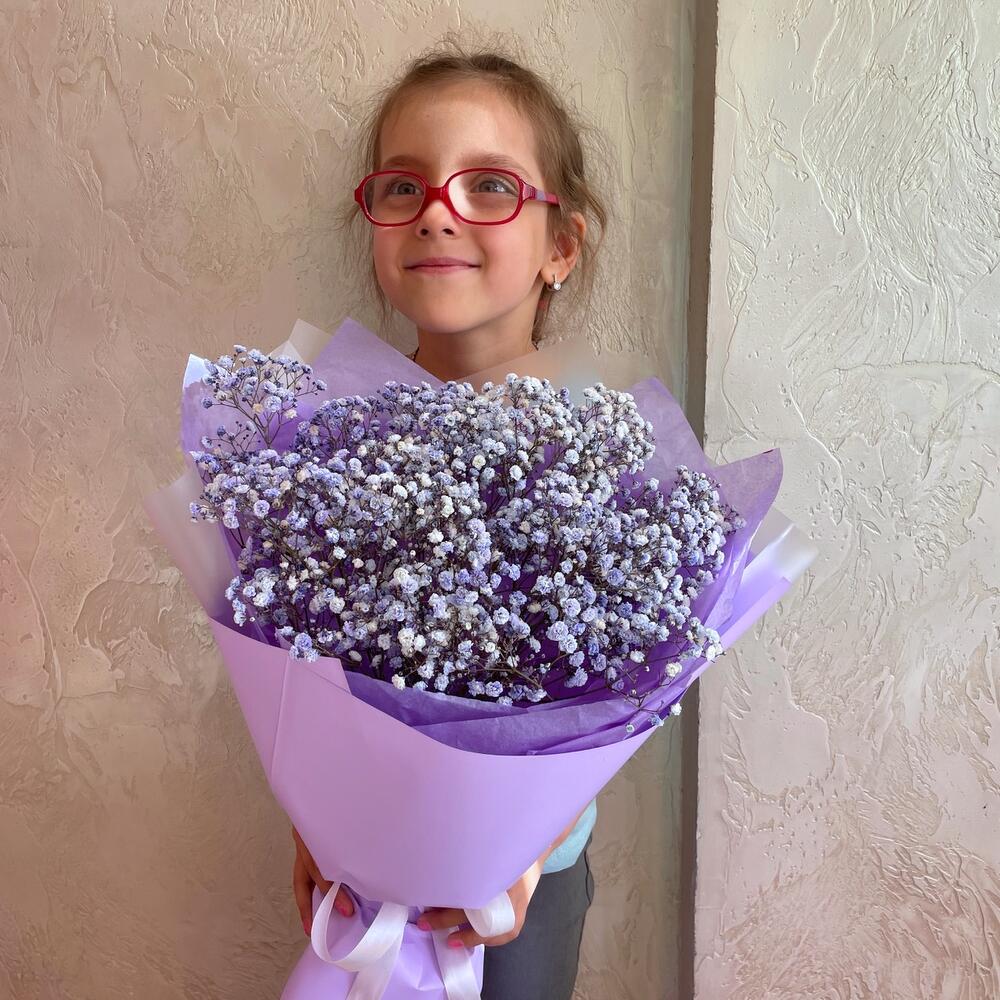 Лента атласная - 1 шт. Упаковка тишью - 2 шт. Упаковка пленка матовая - 2 шт. гипсофила сиреневая - 5 шт. упаковка пленка цветная - 3 шт.